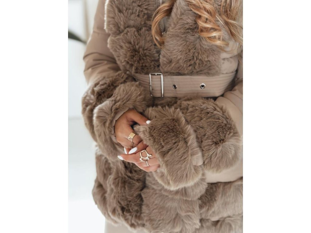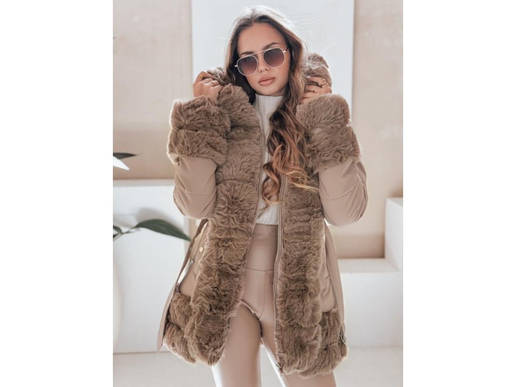 💎 CITYGLANCE: Prémiová Tmavobéžová Bunda s Luxusnou Kožušinou