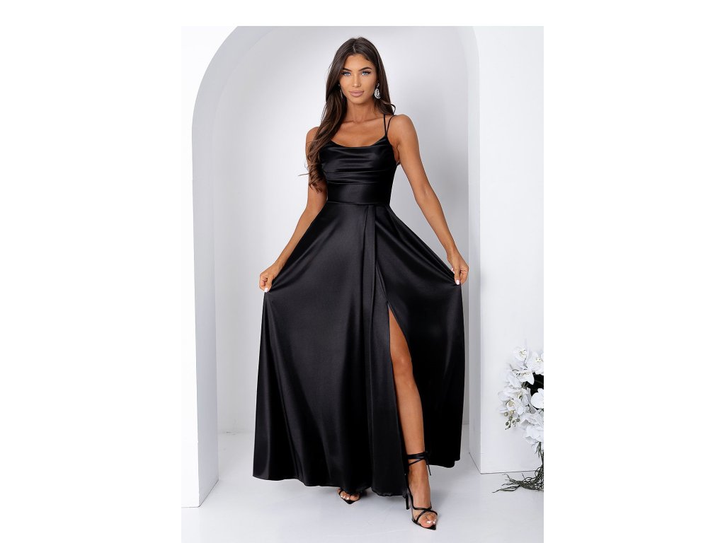 Prvotriedny saténový materiál: Šaty sú vyrobené z jemného, mierne lesklého saténu, ktorý pôsobí luxusne na pohľad aj na dotyk. 🧵