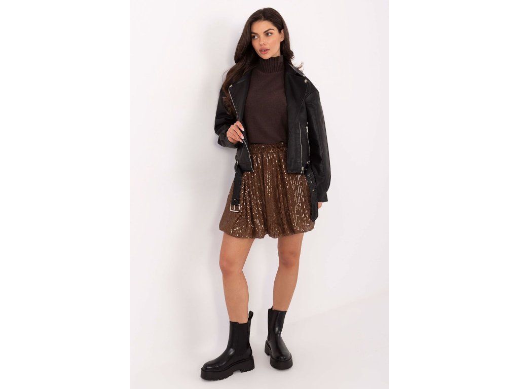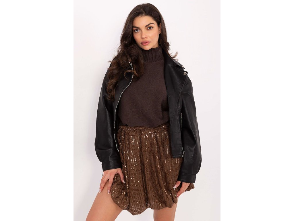 Ohromujúca sukňa v tvare bomby pokrytá flitrami, ideálna na elegantné príležitosti a večierky. Vyrobená z odolnej zmesi polyesteru a elastanu, zaručuje pohodlie a dokonalé prispôsobenie sa postave. Štýl sukne v tvare bomby dodáva sukni moderný, ženský charakter.
