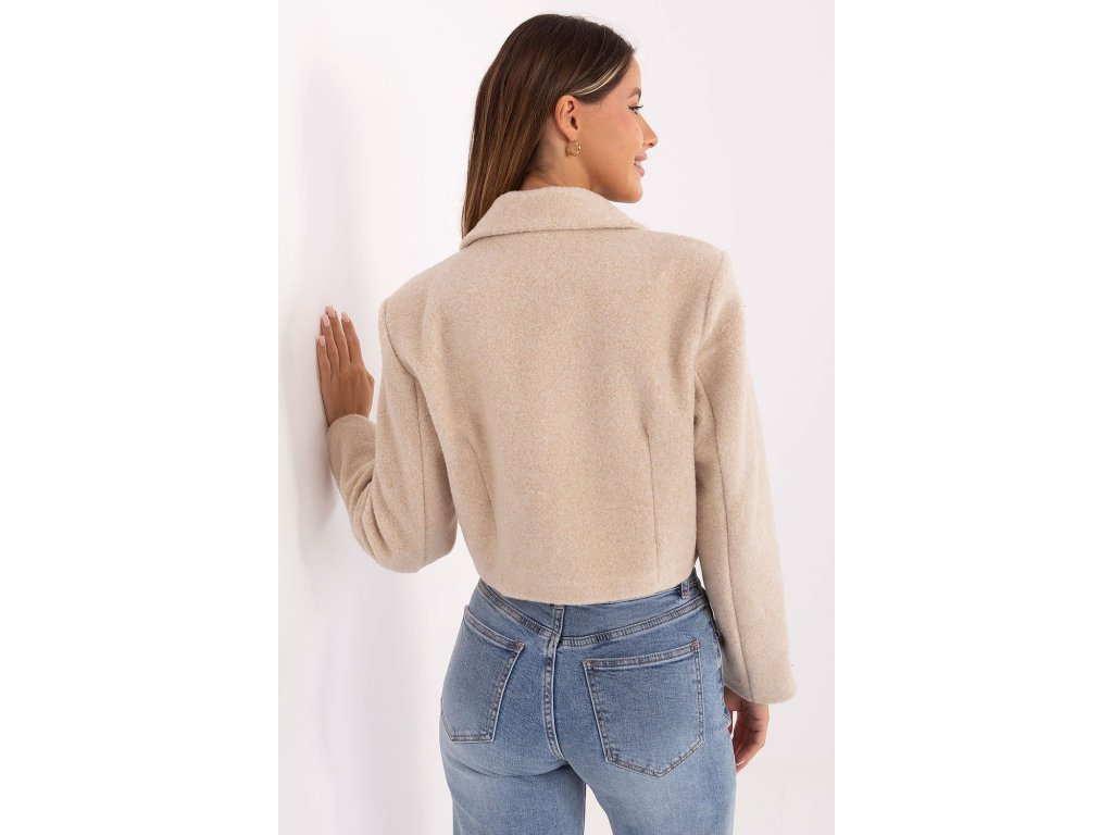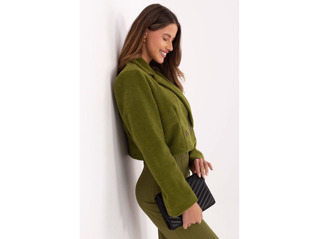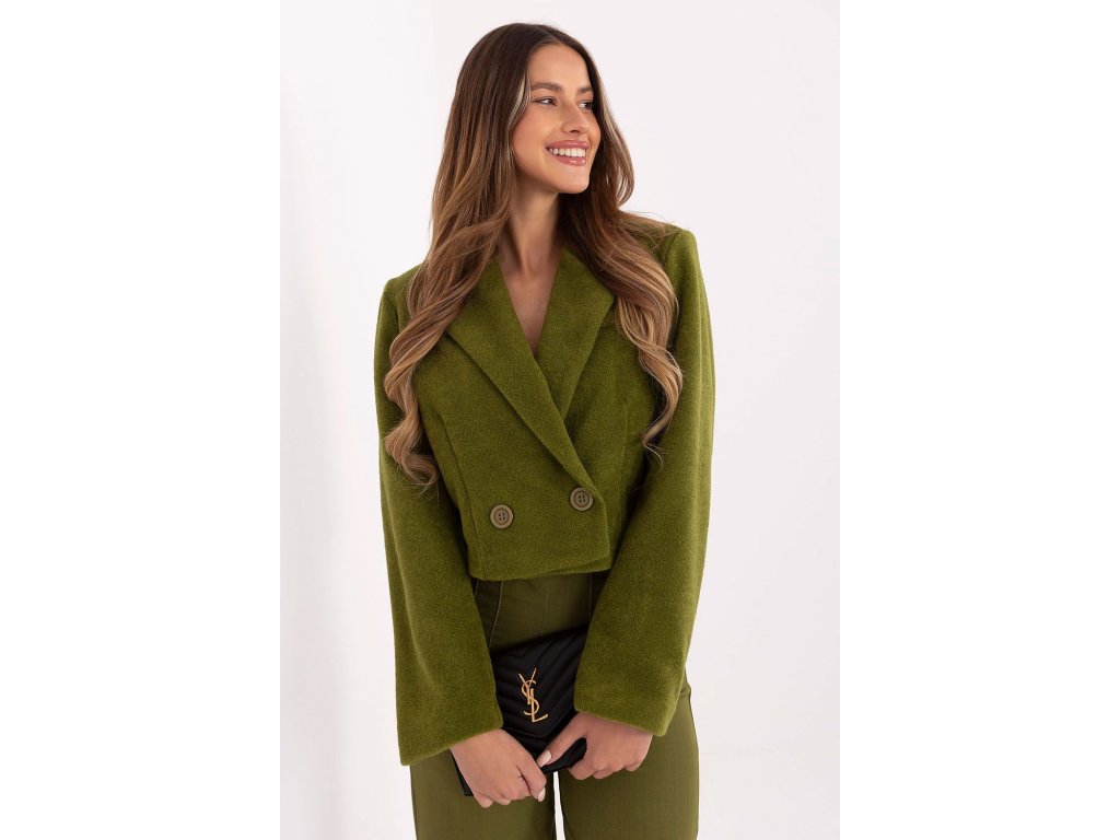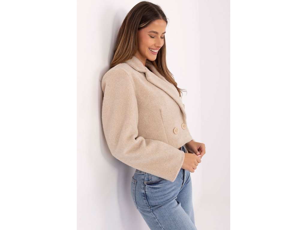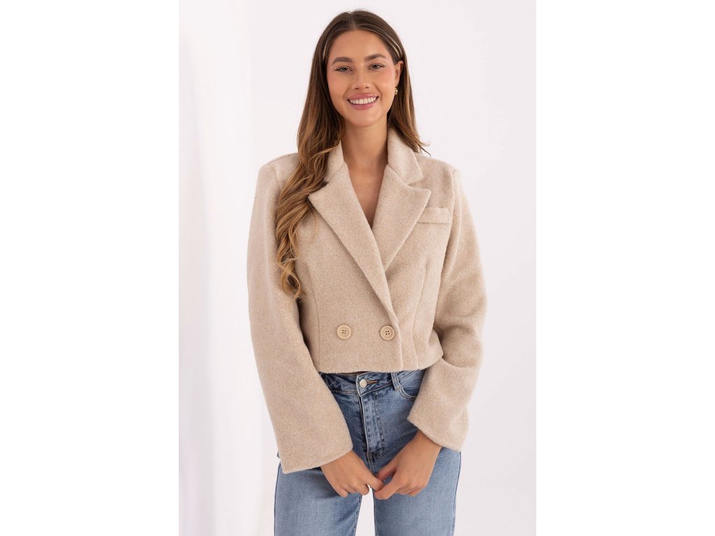 Krásny krátky kabát v béžovej a zelenej farbe, ktorý kombinuje eleganciu a ležérny štýl. Jeho skrátený strih s dvojradovým zapínaním na gombíky zvýrazní postavu a dodá outfitu moderný mestský nádych. Mäkký materiál pôsobí luxusne a príjemne na dotyk, vďaka čomu je kabát ideálny do prechodného obdobia. Perfektne sa hodí k rifliam, elegantným nohaviciam aj šatám.
