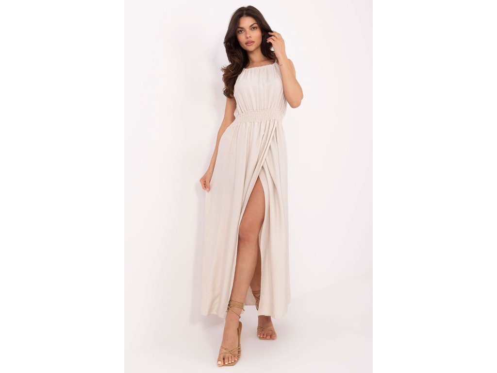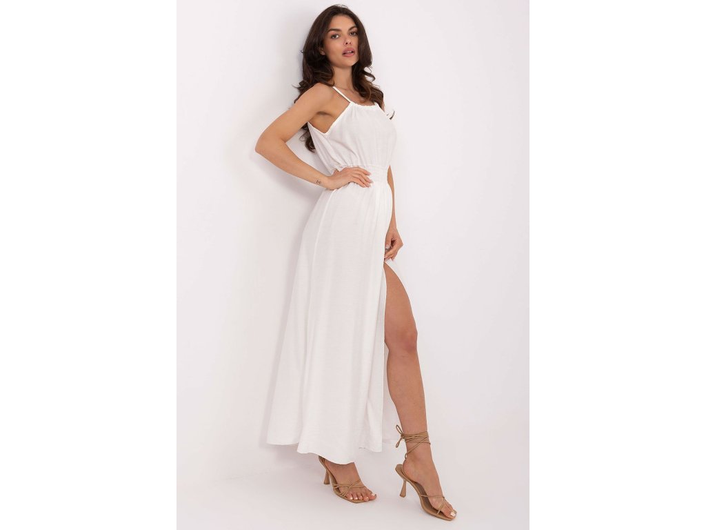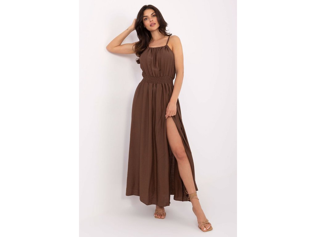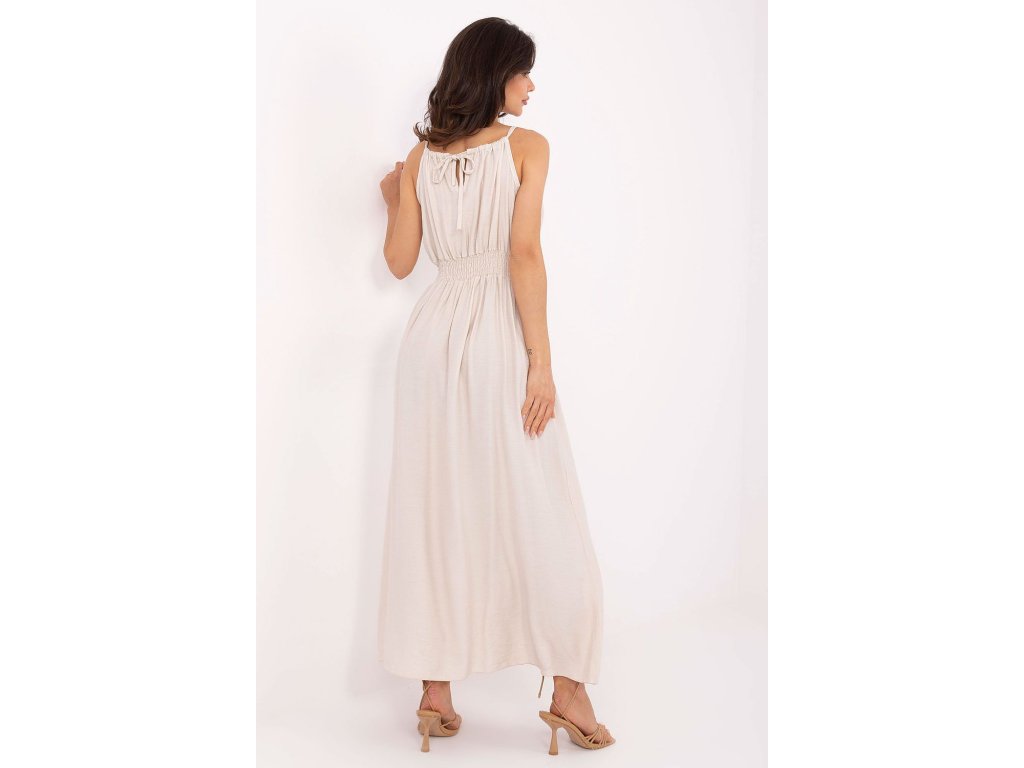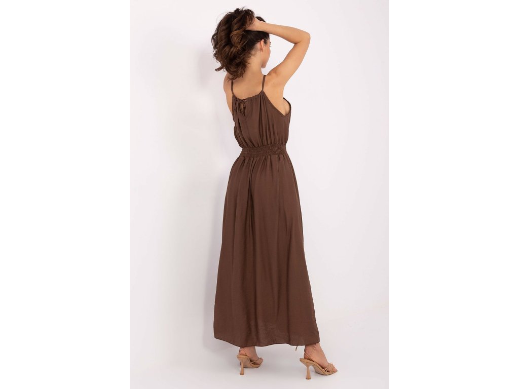 Letné maxi šaty na ramienkach v prekladu o šatách s kopcovým strihom sú spojením pohodlia a jemnej elegancie na každý deň. Vyrobené z ľahkého, priehľadného materiálu zmesi viskózy a nylonu, zabezpečujú pohodlné nosenie aj v horúce dni.