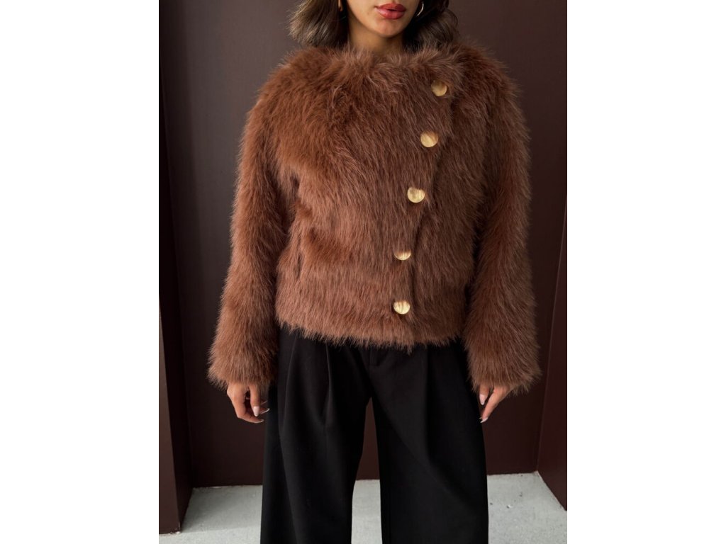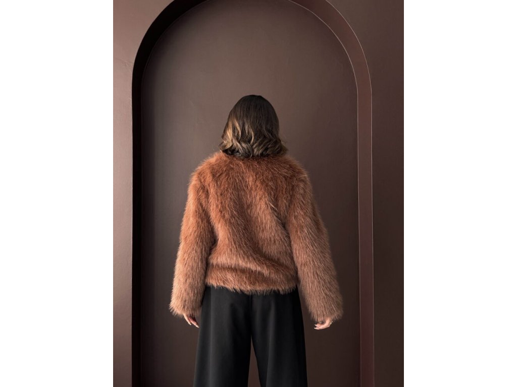 Perfektná Silueta: Strih bundy je navrhnutý tak, aby lichotil postave, zatiaľ čo jej skrátená dĺžka (cropped/jacket style) ju robí ideálnu pre vrstvenie a kombinovanie so sukňami s vysokým pásom, koženými šortkami alebo elegantnými nohavicami.