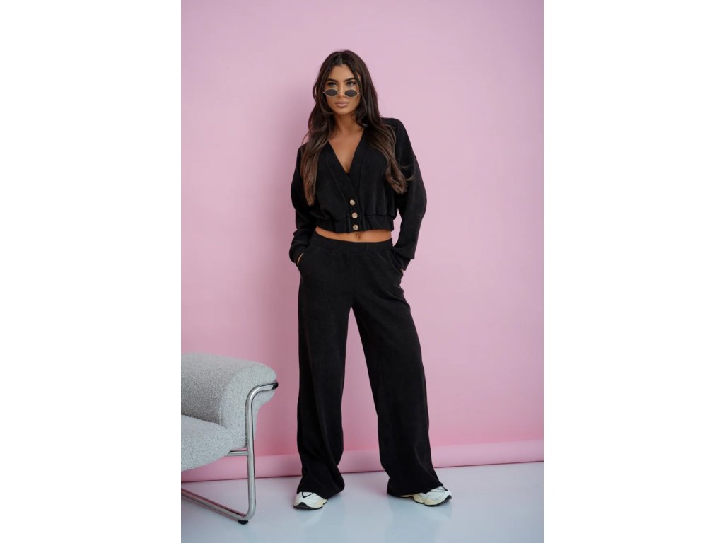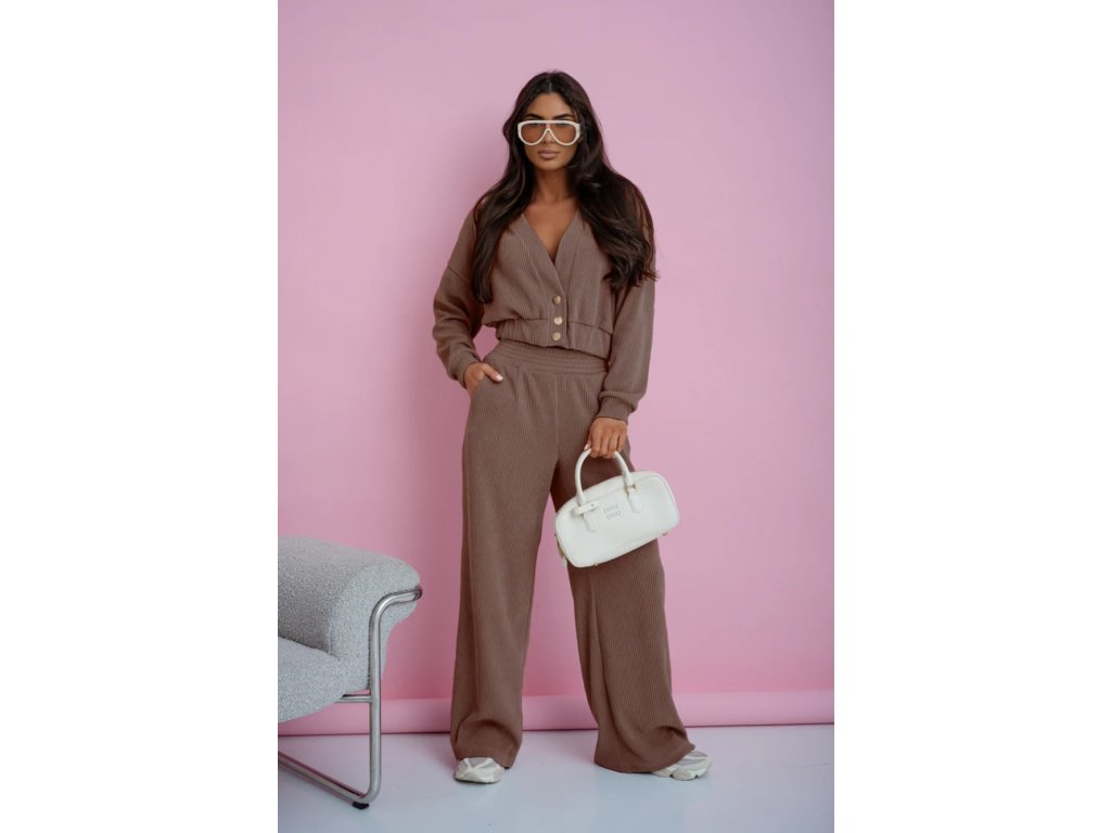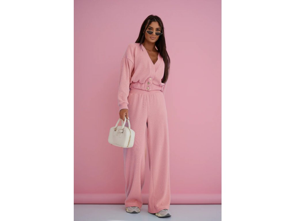 🧥 Štýlový top: Vrchný diel v "crop" strihu s véčkovým výstrihom a gombíkmi dodáva súprave ženskosť. Môžete ho nosiť samostatne alebo navrstviť na obľúbený top.