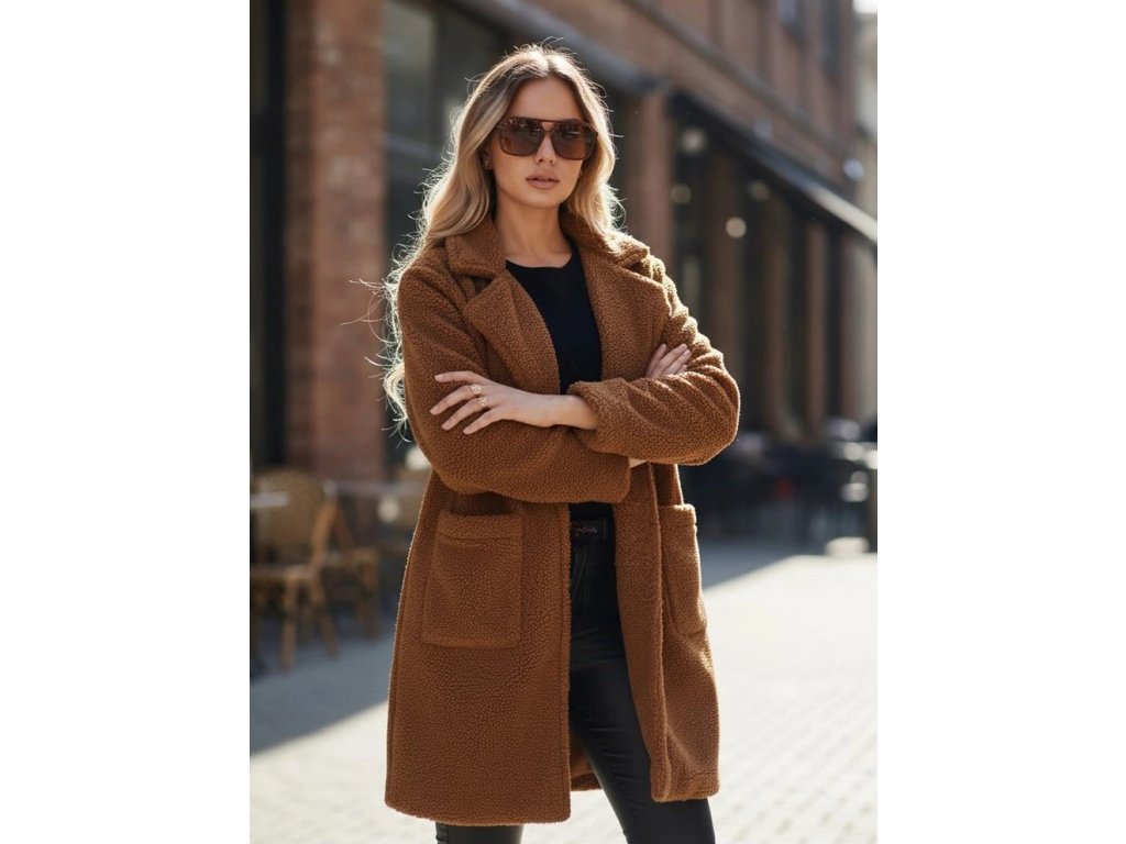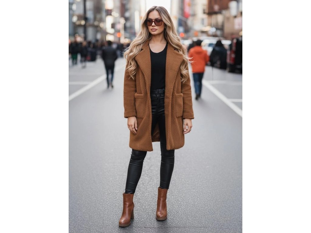 🍂 Univerzálna hnedá farba: Teplý hnedý odtieň (camel) sa fantasticky kombinuje s koženými nohavicami, džínsami aj pletenými šatami.