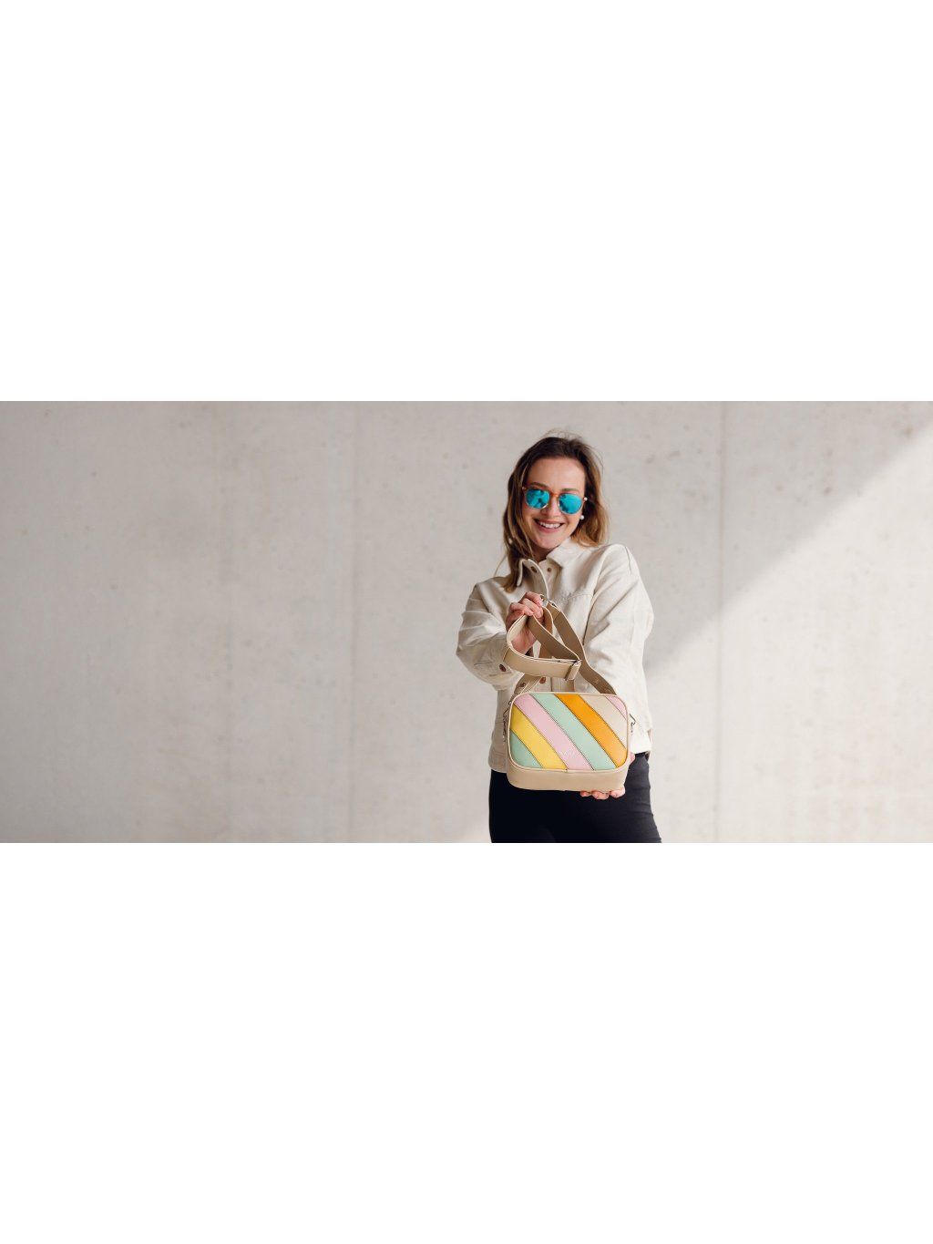 Pruhovaná crossbody kabelka na zips