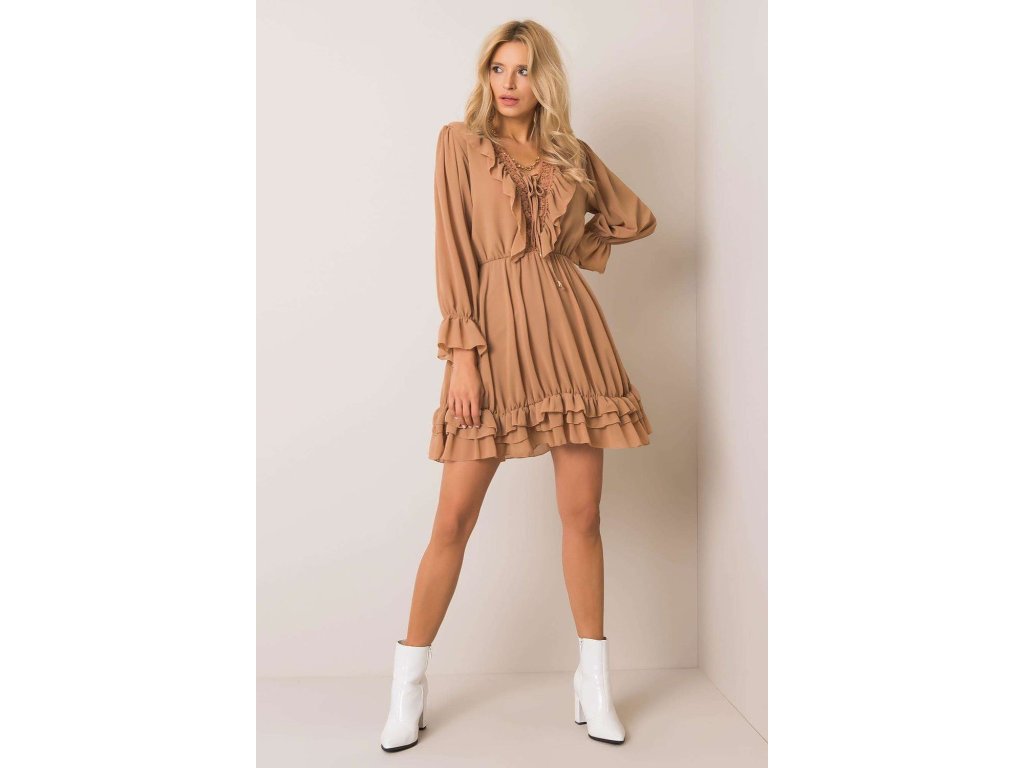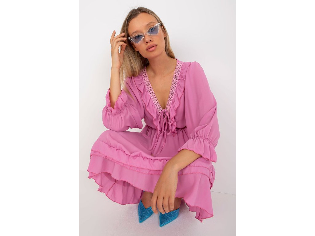 Letné boho šaty s rozšíreným strihom sú ženským a štýlovým návrhom na každodenné nosenie aj do práce. Vyrobené z ľahkej kombinácie polyesteru a viskózy poskytujú pohodlie a slobodu pohybu. Dlhý rukáv zakončený volánom, zaväzovanie pri výstrihu zdobené jemným volánom a čipkou a spodná časť šiat zakončená pôsobivým volánom.