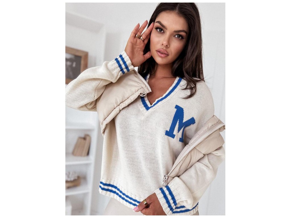 Ak máte radi štýly inšpirované Amerikou, dámsky sveter MIRAGE je pre vás ako stvorený. Má mierne nadrozmerný strih, výstrih do V a ozdobnú nášivku v tvare „M“.