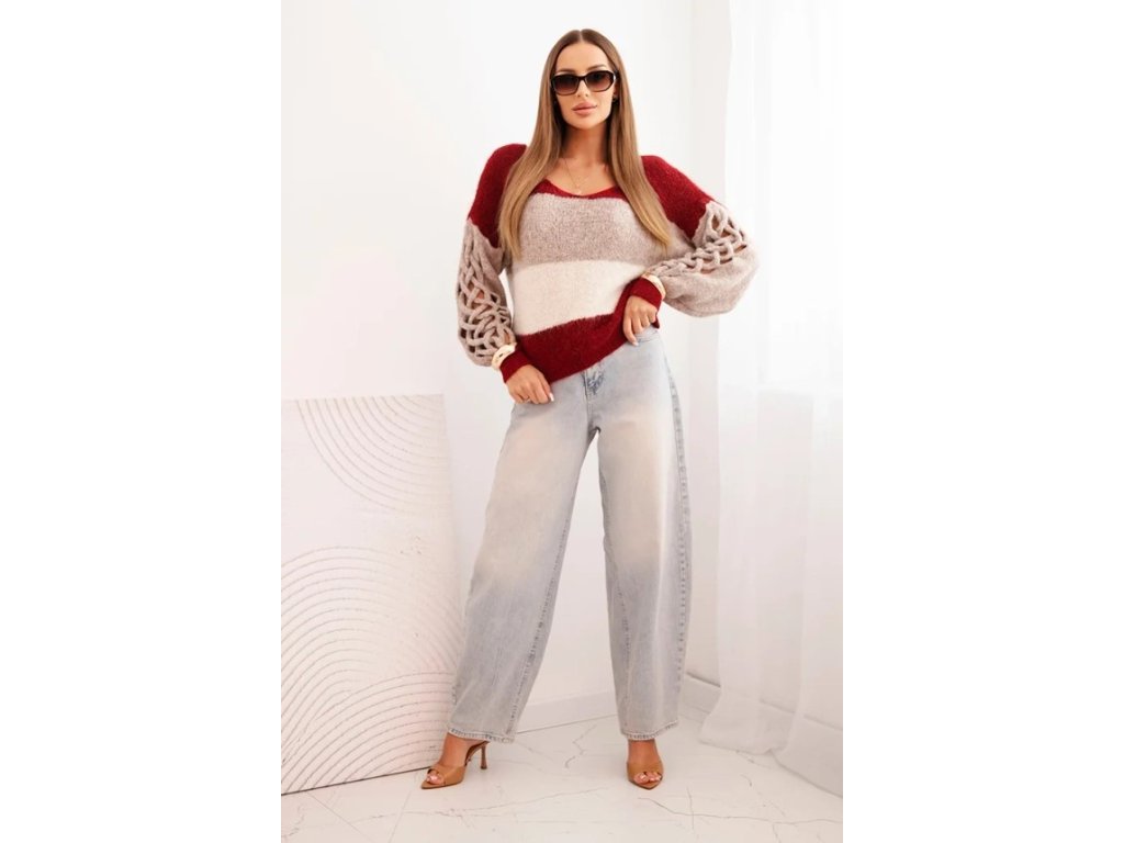 Sveter je vkusne navrhnutý v atraktívnej kombinácii farieb, s dominujúcou bordovou, béžovou a krémovo bielou farbou. Tento harmonický mix farieb ľahko skombinujete s rôznymi spodnými dielmi.