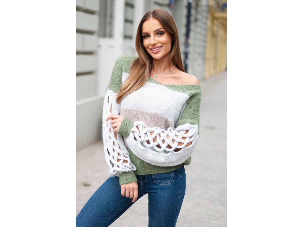 Sveter s prúžkami a vrkočmi na rukávoch
