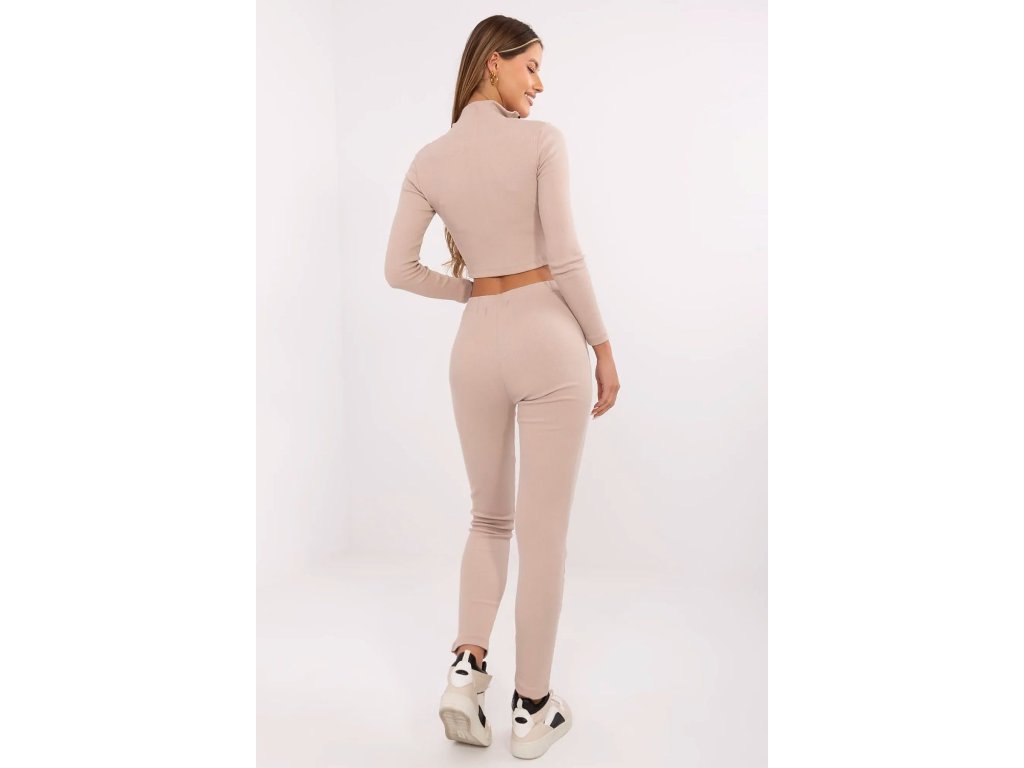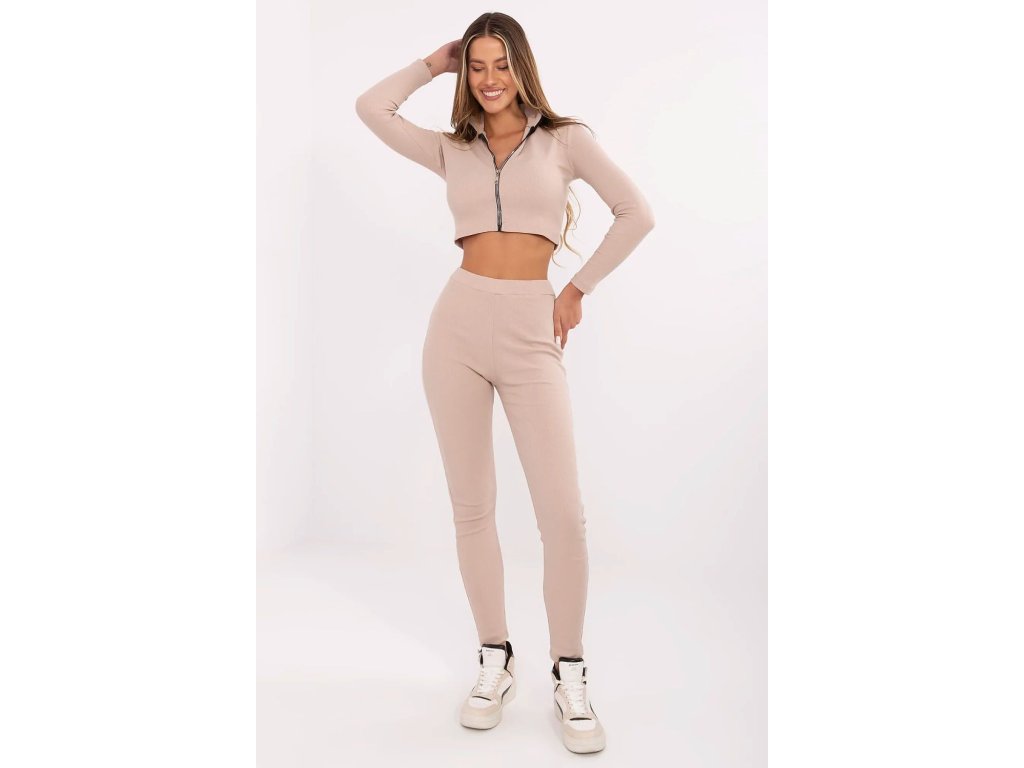 Bežecká súprava pre ženy z prúžkovaného materiálu je ideálnou voľbou na každodenné, pohodlné štýlové outfity. Súčasťou súpravy je krátky top s vysokým golierom, dlhým rukávom a praktickým zipsom, a dlhé nohavice s vysokým pásom.