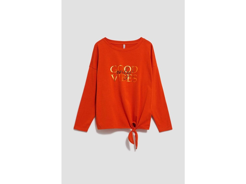 Tričko je jedinečnou kombináciou pohodlia a štýlu. Je vyrobené z najkvalitnejšej bavlny a zaisťuje celodenné pohodlie. Jeho oranžová farba a hladká textúra zdôrazňujú eleganciu a nadčasovosť. Tričko má navyše jedinečnú potlač, ktorá jej dodáva moderný nádych. Zaväzovanie na leme umožňuje nastaviteľný strih, vďaka čomu si ju môžete prispôsobiť svojim preferenciám a štýlu. Dlhé rukávy a okrúhly výstrih dodávajú blúzke ženský a jemný nádych.