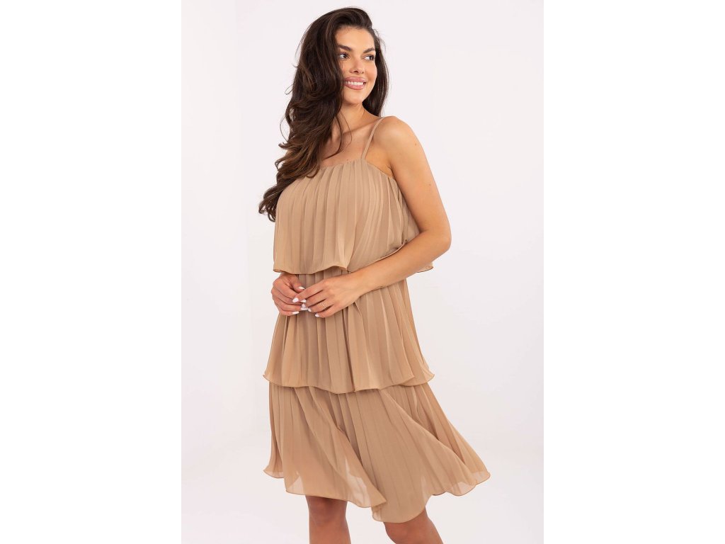 Elegantné a štýlové šaty po koleno vytvorené s ohľadom na špeciálne príležitosti. Šaty sú vyrobené z hladkého materiálu z kombinácie polyesteru a viskózy, krásne padnú a zabezpečujú pohodlné nosenie. Šaty majú jemnú podšívku, ktorá im dodáva eleganciu.